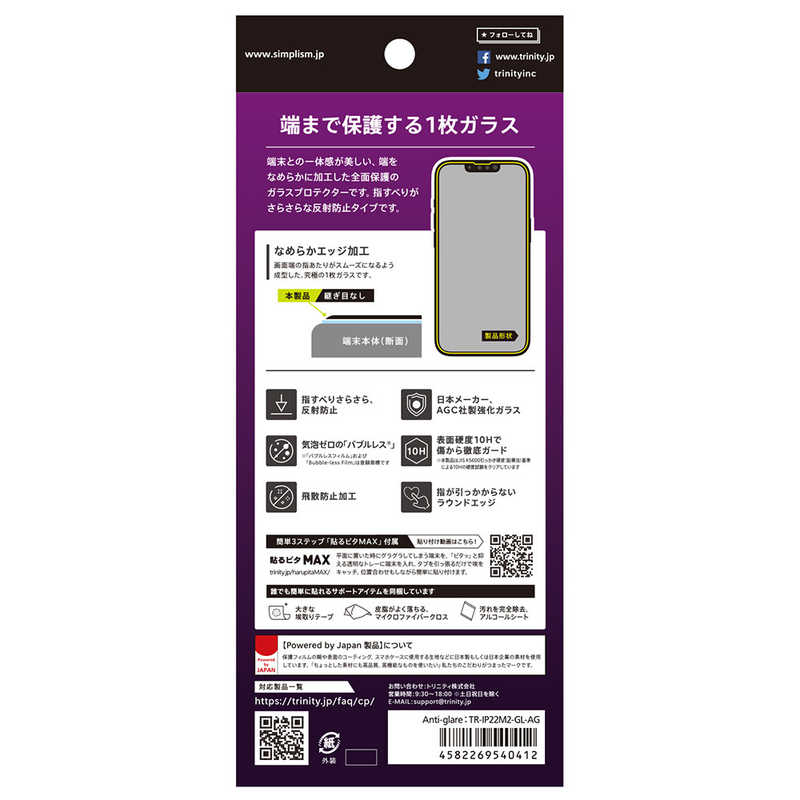 トリニティ iPhone 14/13/13 Pro用フルカバー 反射防止 画面保護強化ガラス TR-IP22M2-GL-AG