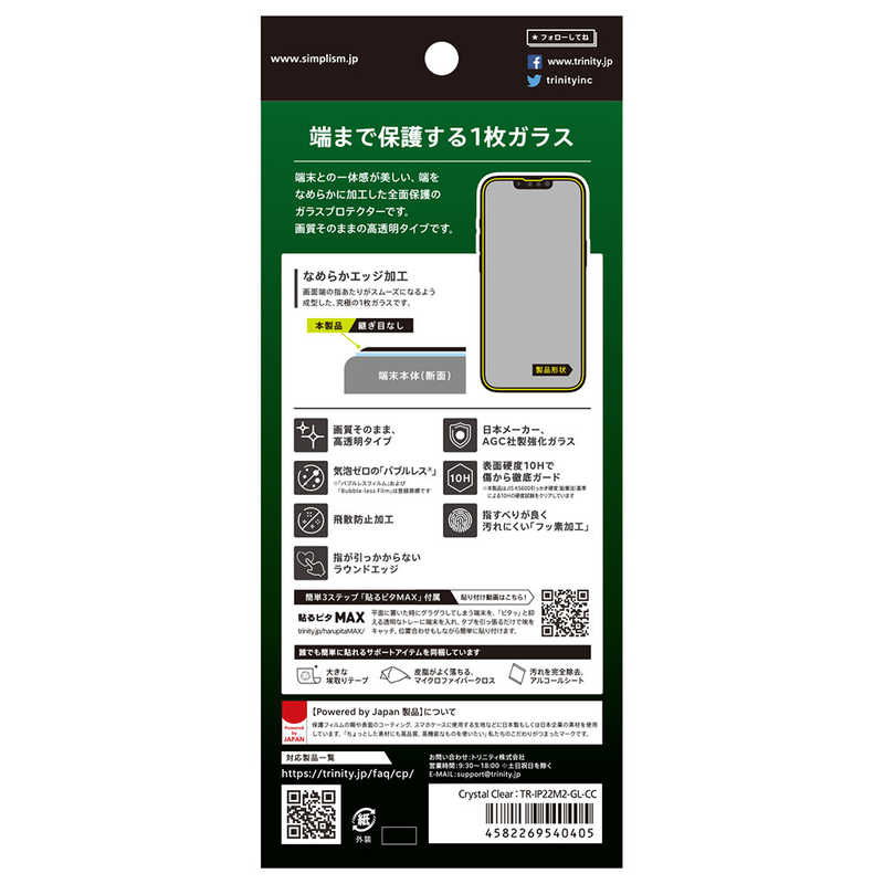 トリニティ iPhone 14/ 16e/ 13/ 13Pro 6.1インチ フィルム フルカバー 画面保護強化ガラス 高透明 TR-IP22M2-GL-CC