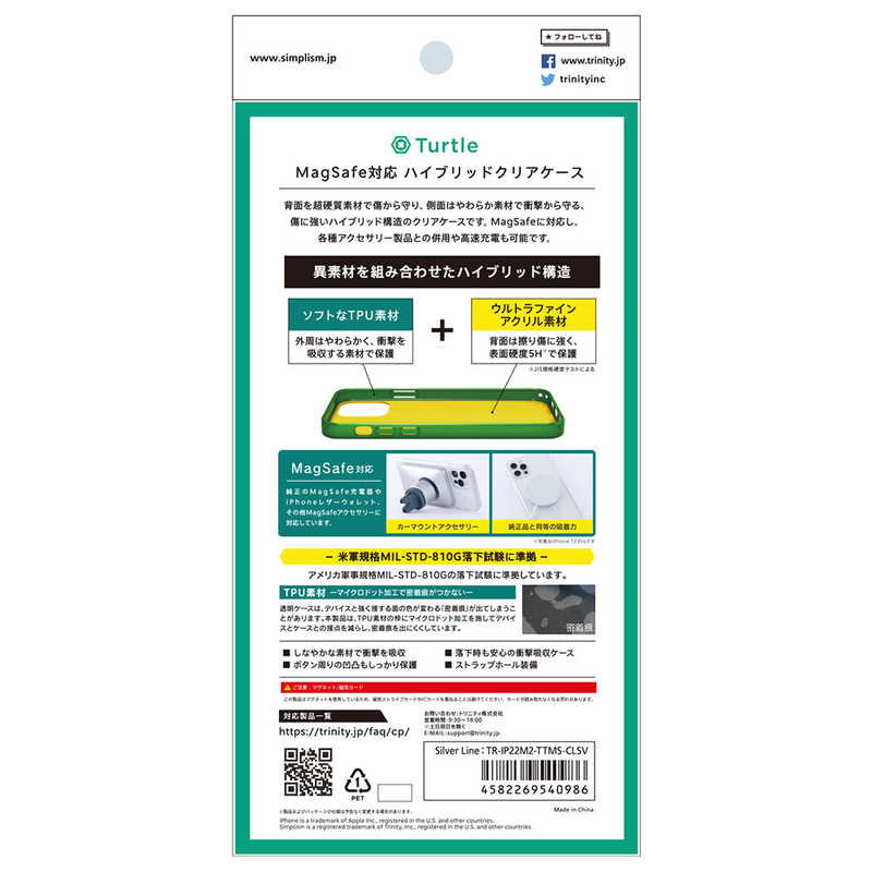 トリニティ iPhone 14 6.1インチ iPhone 13 [Turtle] MagSafe対応 ハイブリッドクリアケース シルバーライン TRIP22M2TTMSCLSV