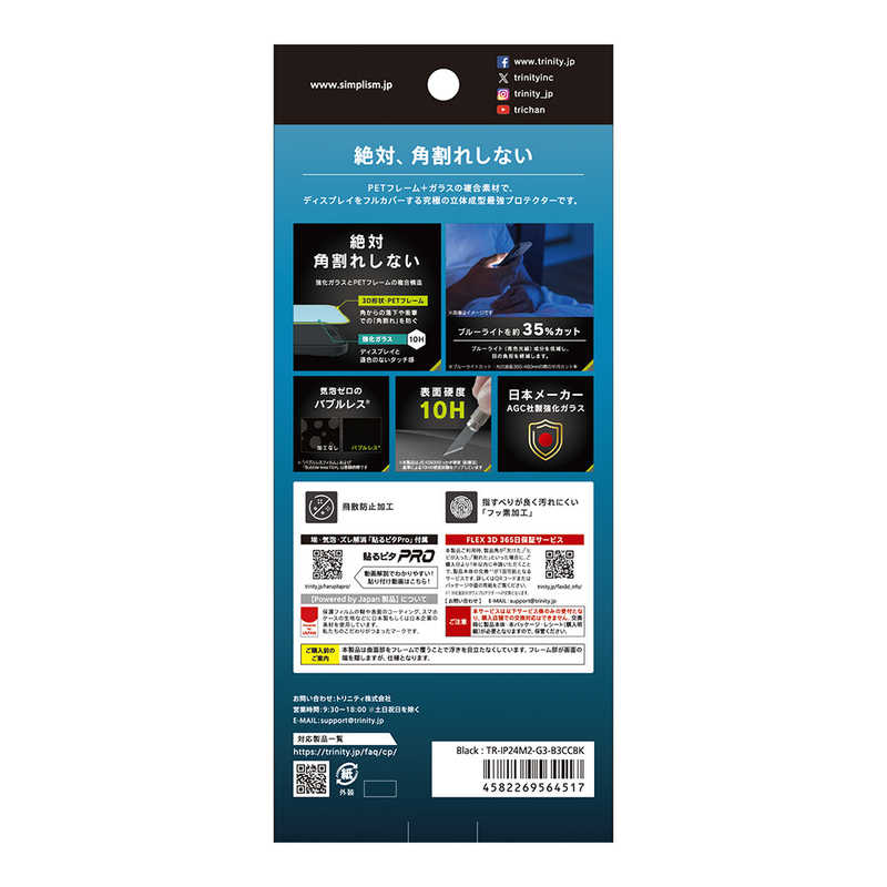 ![トリニティ iPhone 16/15/14 Pro用[FLEX 3D] 黄色くないブルーライト低減 複合フレームガラス ブラック TR-IP24M2-G3-B3CCBK](/html/upload/save_image/0311201758_69b14f66480f2.jpg)