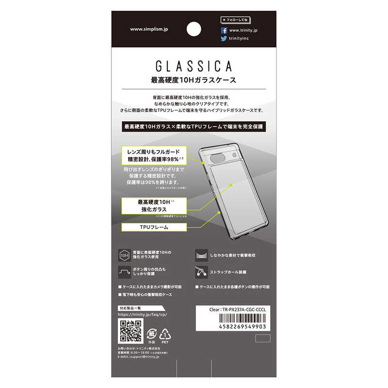 トリニティ Google Pixel 7a用背面ガラスケース [GLASSICA] クリア TR-PX237A-CGC-CCCL