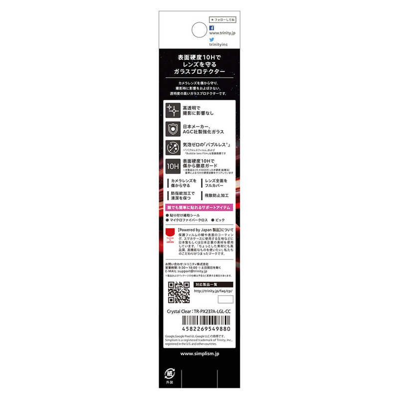 トリニティ Simplism Google Pixel 7a レンズを守る 高透明 レンズ保護ガラス TR-PX237A-LGL-CC