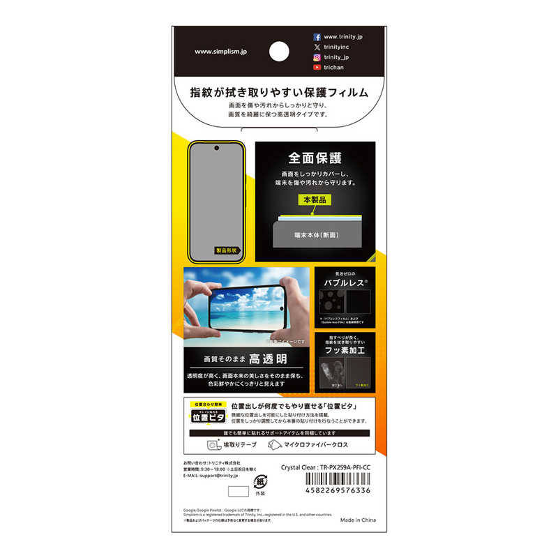 トリニティ Google Pixel 9a用高透明 画面保護フィルム 位置ピタ TR-PX259A-PFI-CC