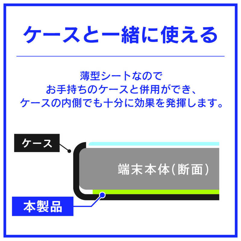 ●ケースと一緒に使える極薄0.9mm(※ケースの形状によっては使用できない場合あり)。