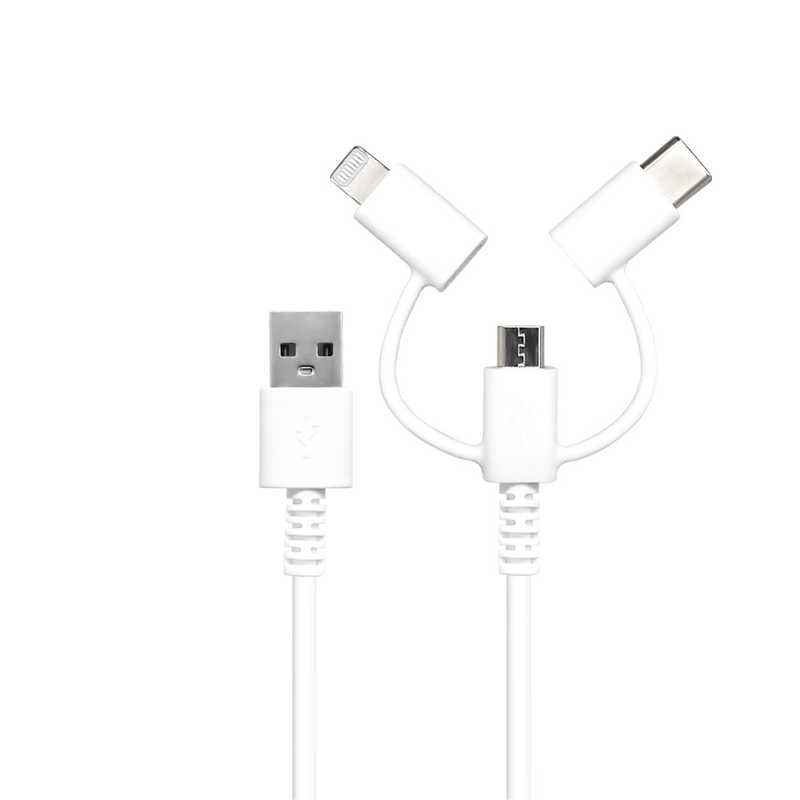 エアージェイ air-j ふわふわ3in1ケーブルA to C.Lightning.MicroUSB 1m UKJALMC1MWH
