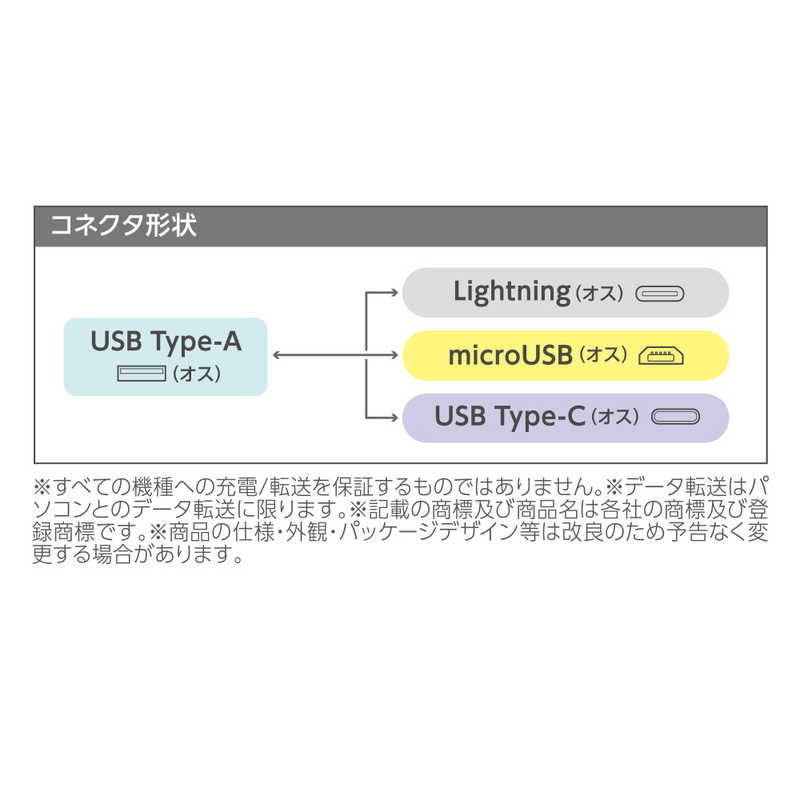 ■コネクター形状:USB Type-A(オス)-Lightning(オス)+microUSB(オス)+USB Type-C(オス)