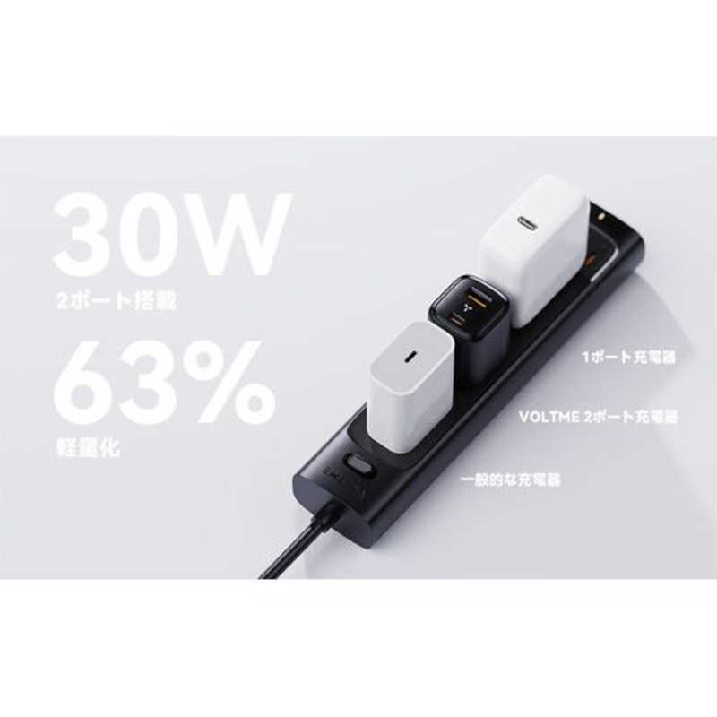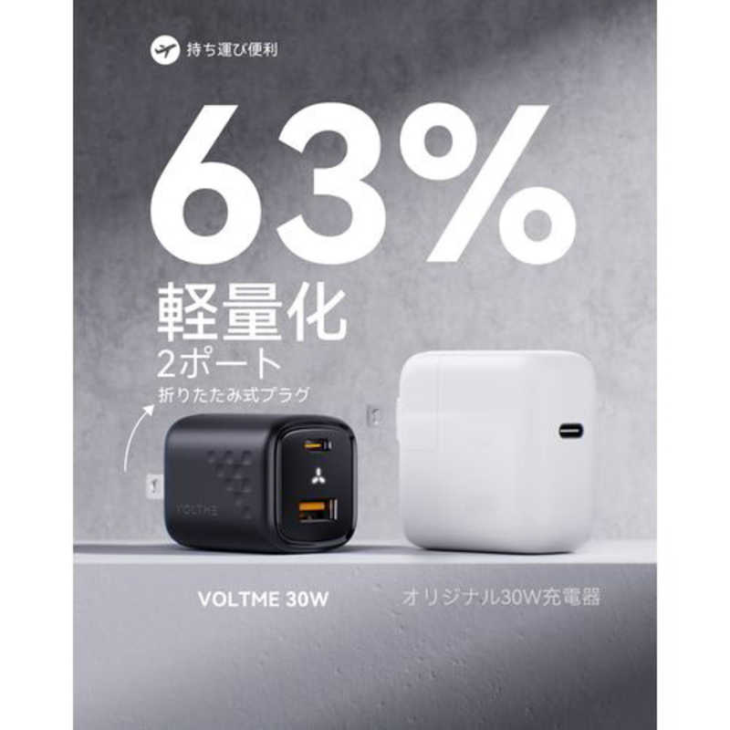 ボルトミー VOLTME Revo 30 デュオ 30W TypeC・USB-A 2ポート 黒 折りたたみ式 [2ポート /GaN(窒化ガリウム) 採用] V2097