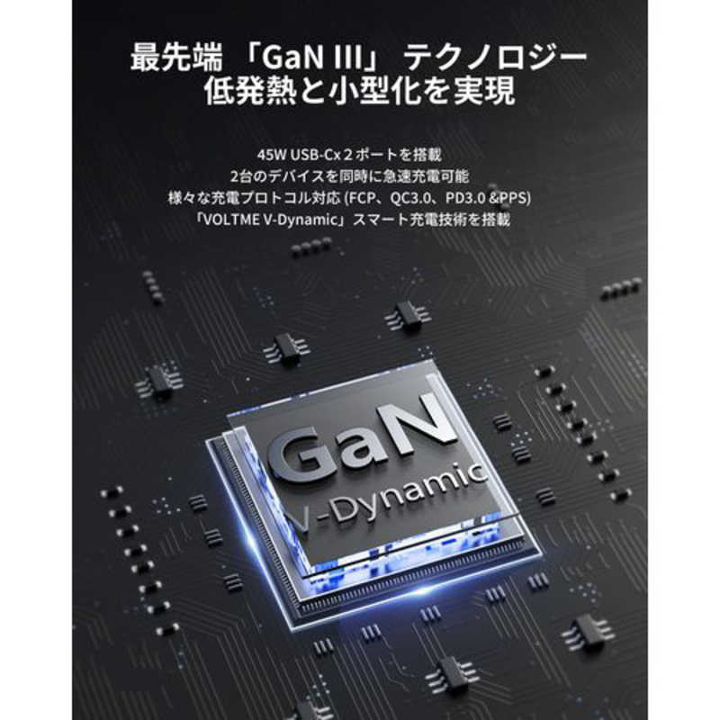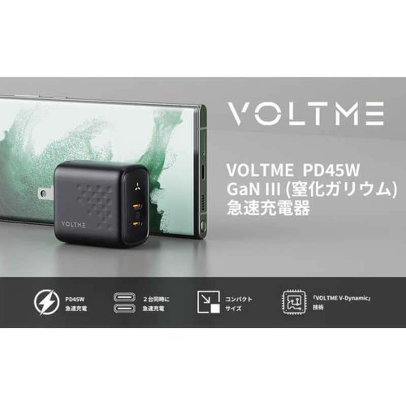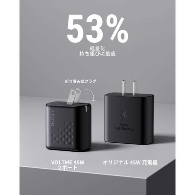 ボルトミー VOLTME レボ 45 デュオ 45W 2ポート TypeC 黒 折りたたみ式 [2ポート /GaN(窒化ガリウム) 採用] V2141