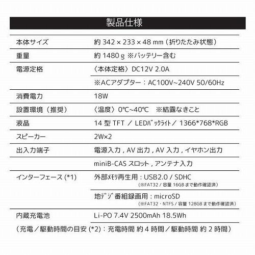 ■液晶: 14型TFT/LEDバックライト/1366*768*RGB