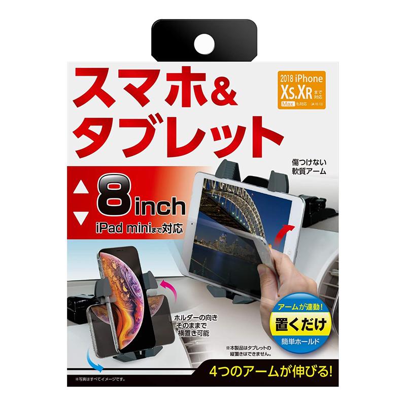 ●ホルダーの向きを変えることなく、スマートフォンの縦置き/横置き、8インチまでのタブレットの横置きが可能です。