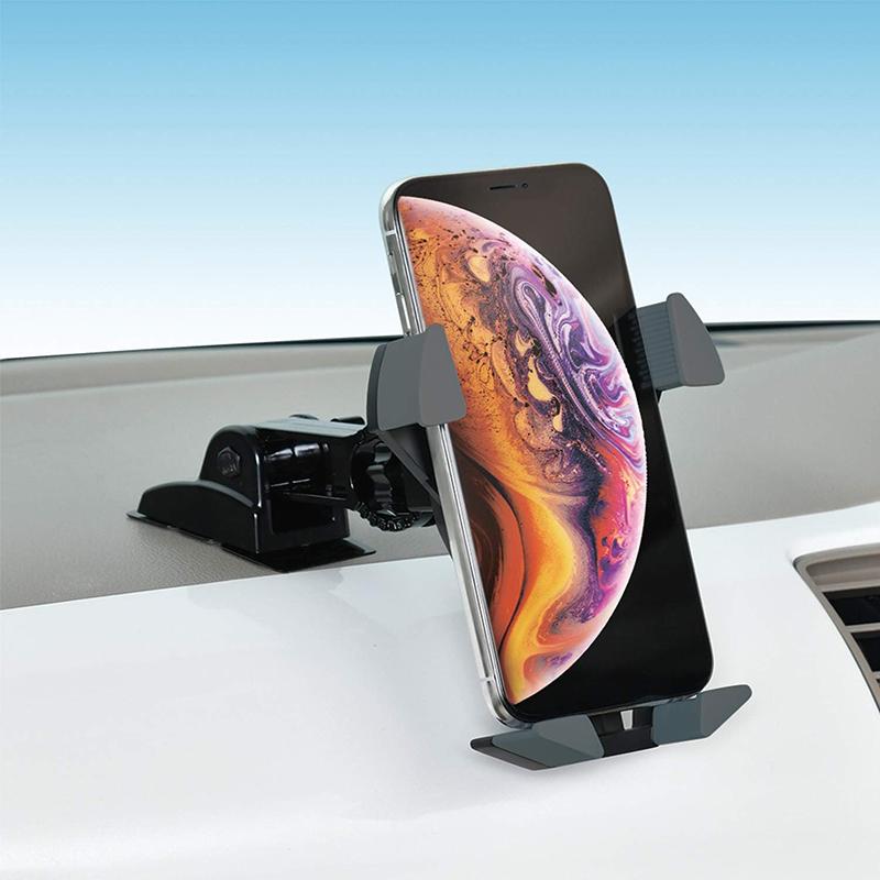 ●片手でモバイル機器を置くだけで、左右のアームが開閉し、優しく挟んで固定します。