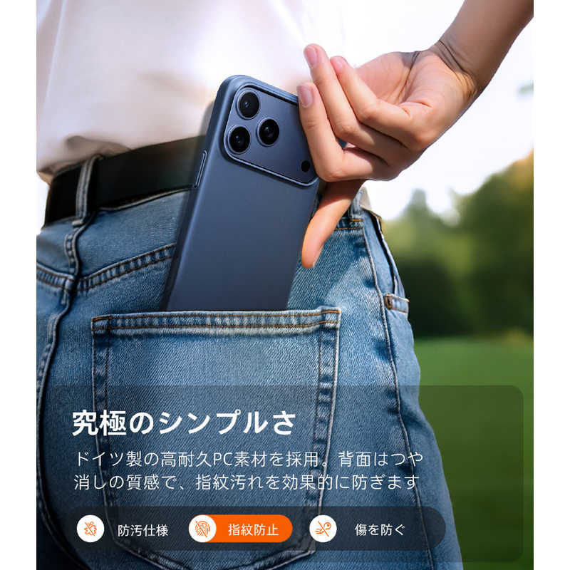 ・厳選されたPC素材を使用、背面はつや消しの質感で、非常に滑らかな感触です。