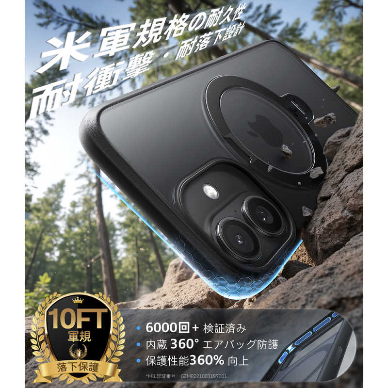 ・全面360°エアバッグと高耐久素材を採用し、スマートフォンを全方位からしっかりと守り、安全性を徹底追求。