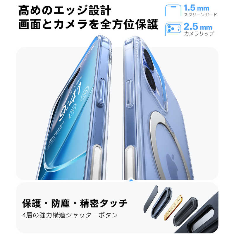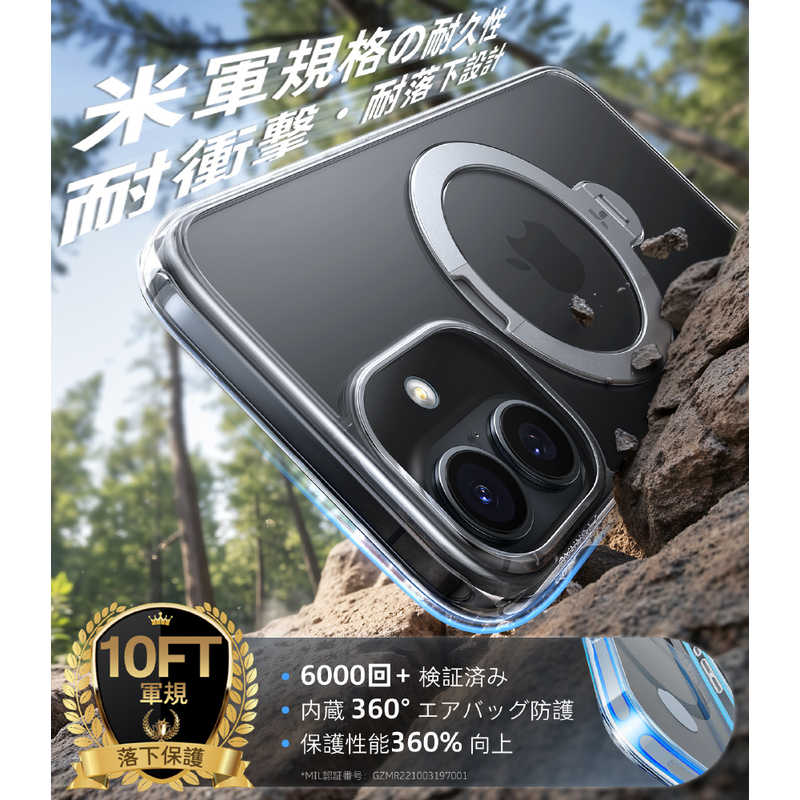 ・全面360°エアバッグと高耐久素材を採用し、スマートフォンを全方位からしっかりと守り、安全性を徹底追求。