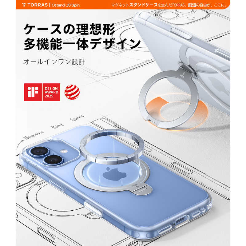トラス TORRAS iPhone17用アクリル樹脂+TPUケース TORRAS OSTAND Q3 SPIN クリア X00FX2911