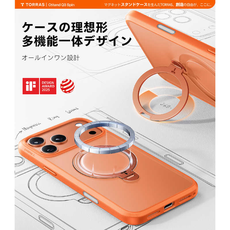 トラス TORRAS Ostand Q3 Spin Case for iPhone 17 Pro オレンジ X00FX2915