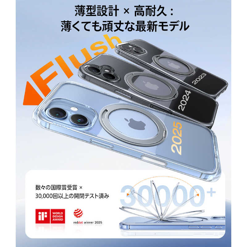 ・スタンドは3,000回以上の開閉耐久テストをクリアしており、高耐久性で壊れにくい。