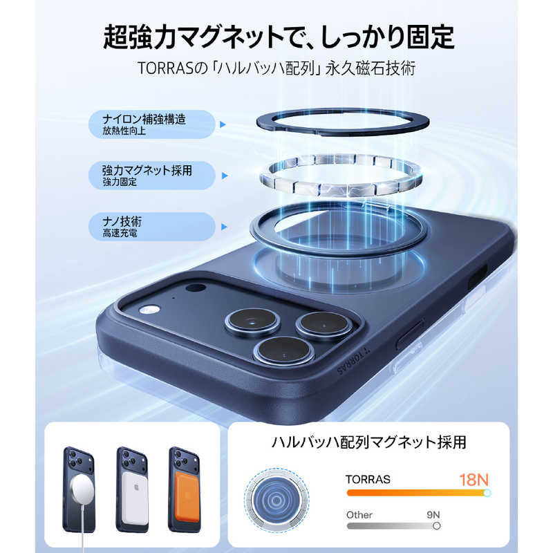 トラス TORRAS iPhone17 Pro用複合素材PC+TPUケース TORRAS OSTAND PRO ミドナイトブルー X00FX2927
