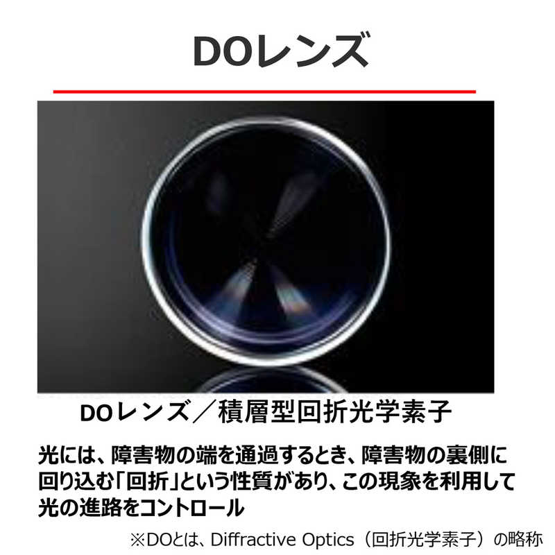 ●色収差補正効果と非球面レンズの性質をあわせ持つDOレンズを含む光学系を採用。