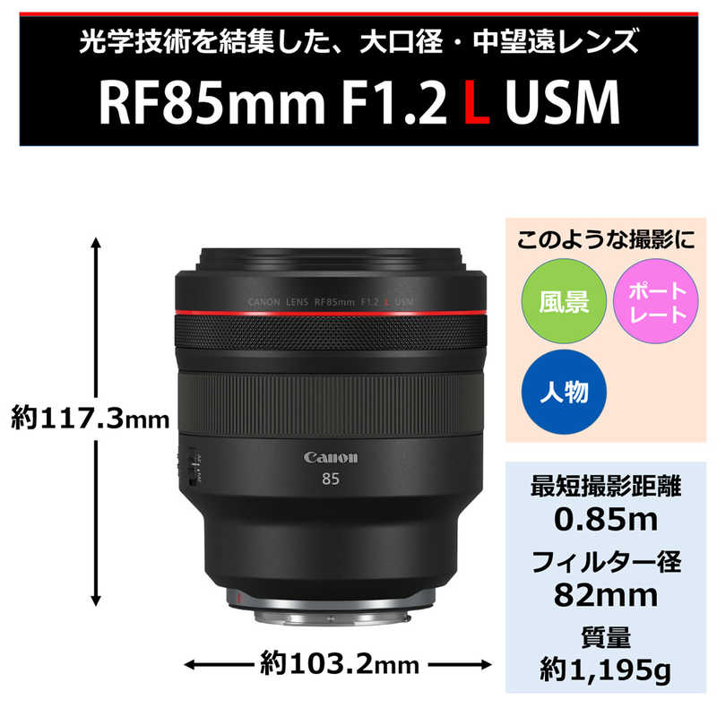 キャノン Canon 大口径中望遠単焦点レンズ RF85mm F1.2 L USM RF8512LU