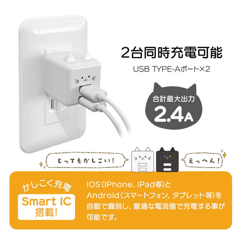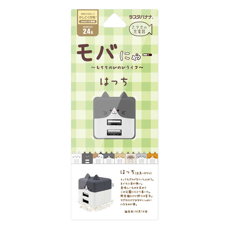 ラスタバナナ RastaBanana USB2ポート モバにゃー AC充電器 計2.4A ハッチ RAC2A2A02HAC
