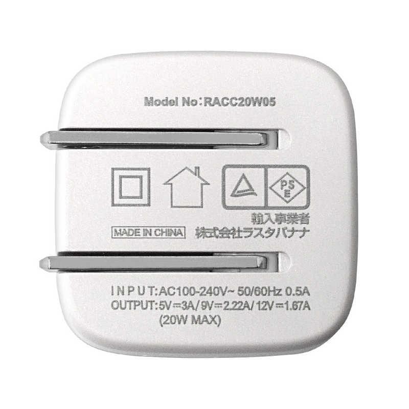 ラスタバナナ RastaBanana PD20W対応 TYPE-C1ポート AC充電器 ホワイト RACC20W05WH