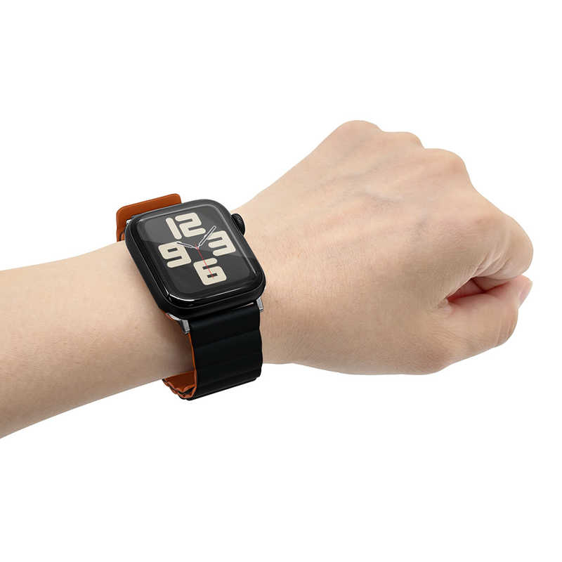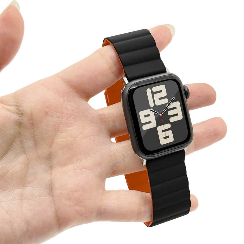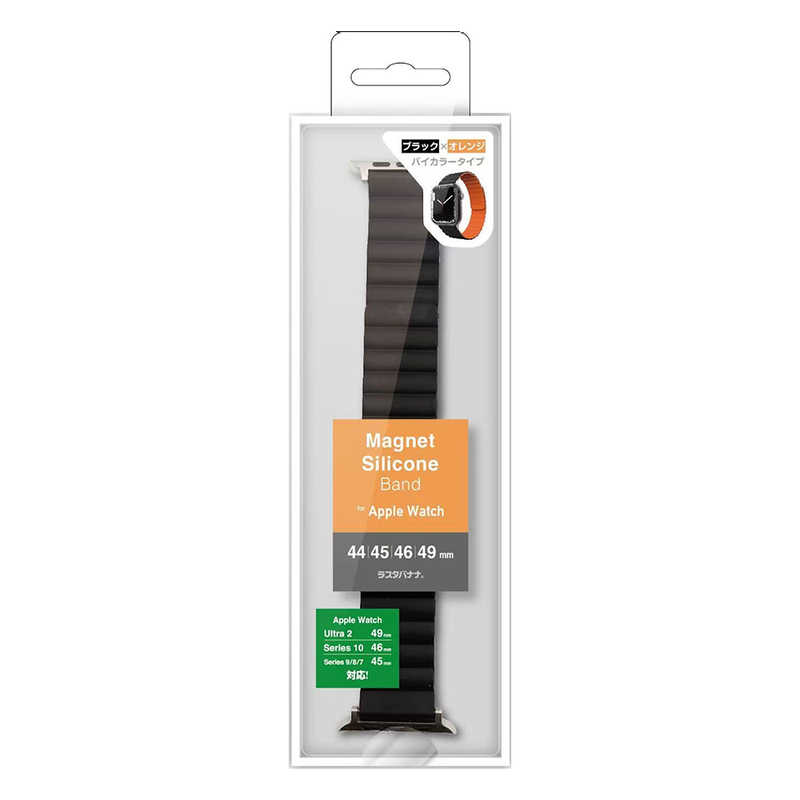 ラスタバナナ RastaBanana Apple Watch 44/45/46/49mm マグネットシリコンバンド ブラック×オレンジ RBLAWM4407BKOR