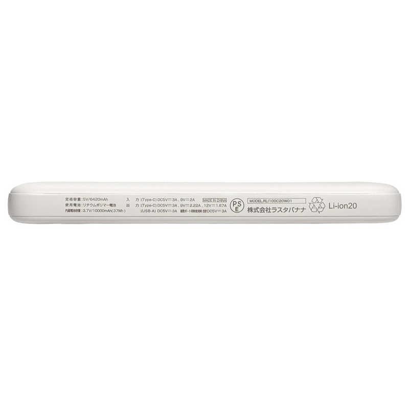 ラスタバナナ RastaBanana 10000mAh モバイルバッテリー A×2 C×1ポート 20W出力 WH [3ポート] ホワイト RLI100C20W01WH