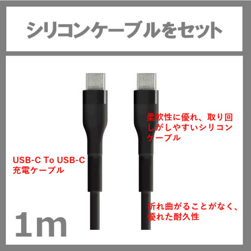 ●USB typeCケーブルをセット取り回しがしやすく、強度のあるシリコンケーブルを同梱●持ち運びに最適な小物ケース付き充電器の持ち運びに使えるケースをセット。