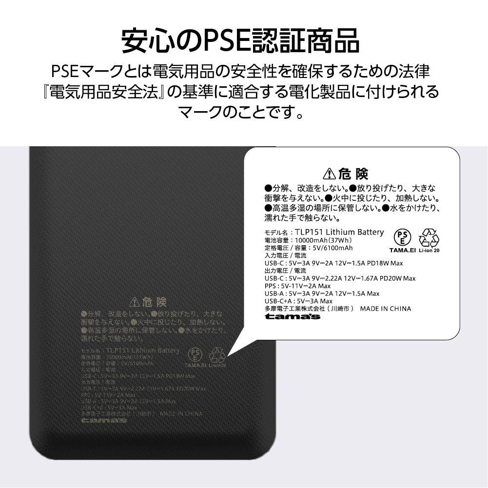 多摩電子工業 PD対応 モバイルバッテリー 10000mAh ブラック TLP151UCK