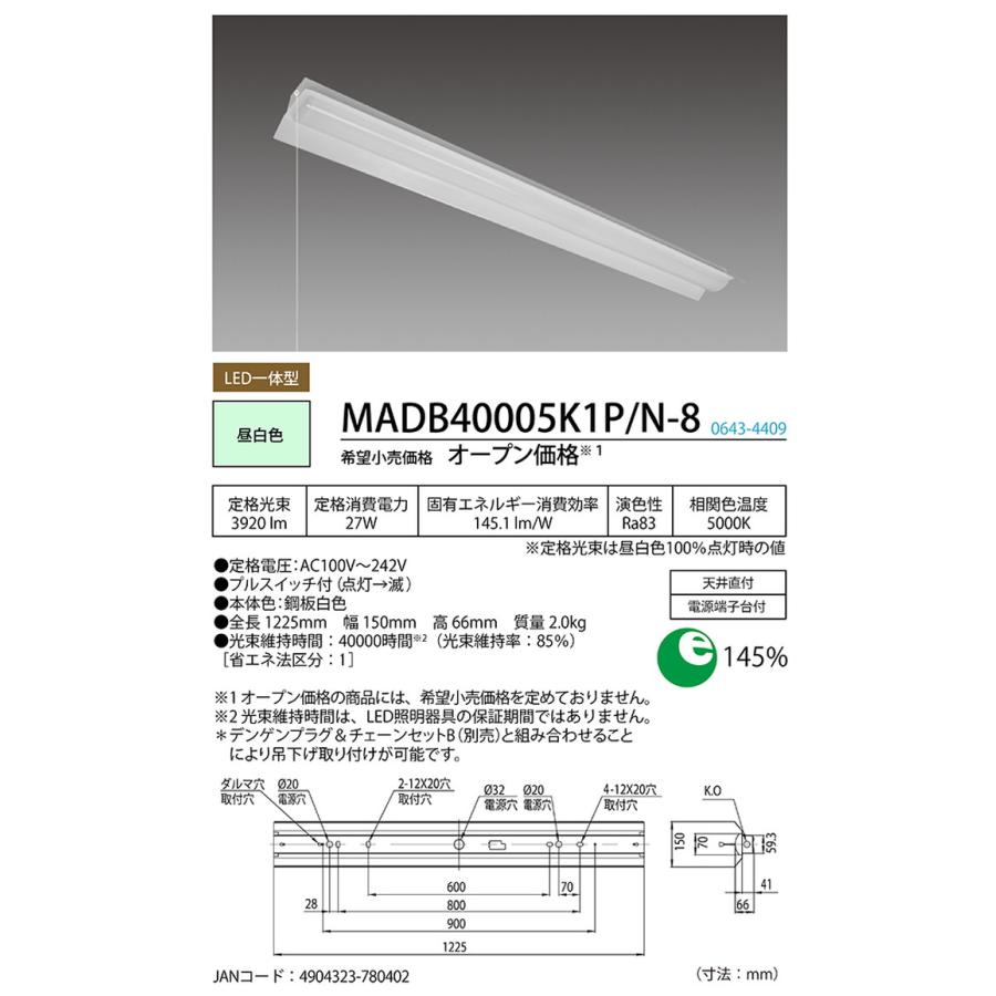 ホタルクス LED一体型ベース照明 Nuシリーズ 両反射笠付(A1) MADB40005K1P/N-8