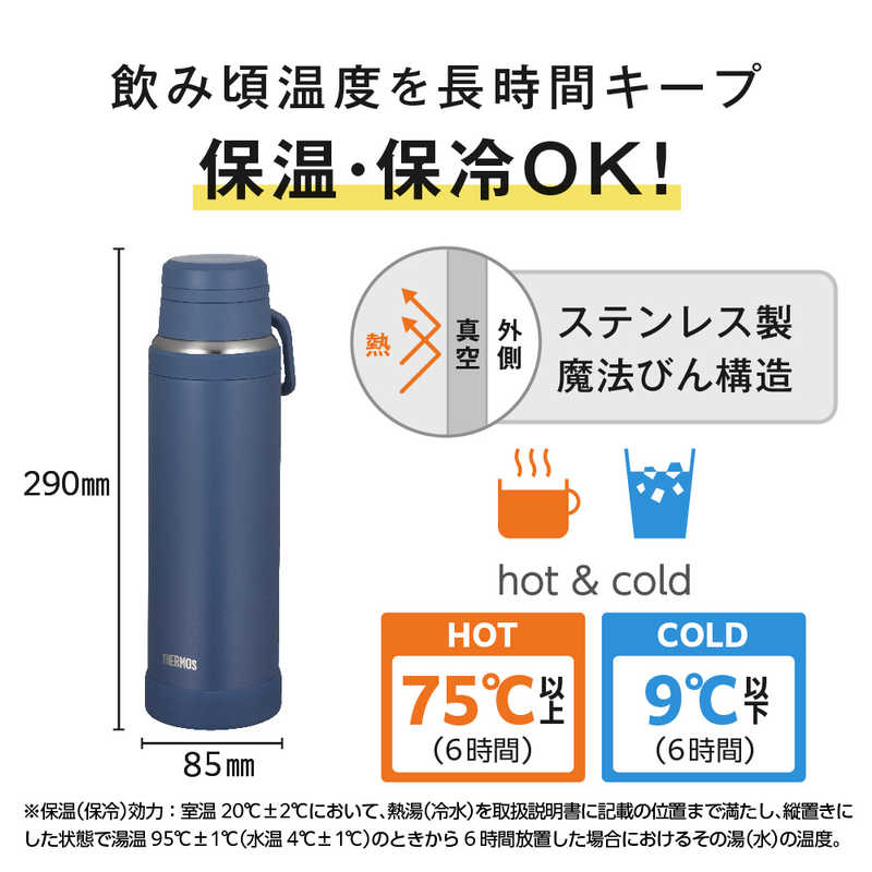 ※保温効力とは、室温20℃±2℃において製品に熱湯をフタ下端まで満たし、湯温が95℃±1℃のときからフタを付けて縦置きにした状態で6時間放置した場合におけるその湯の温度です。