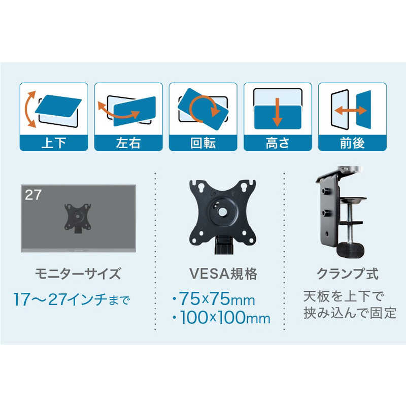 ●耐荷重:2kg~6.5kg※2kg未満の液晶ディスプレイは使用できません。