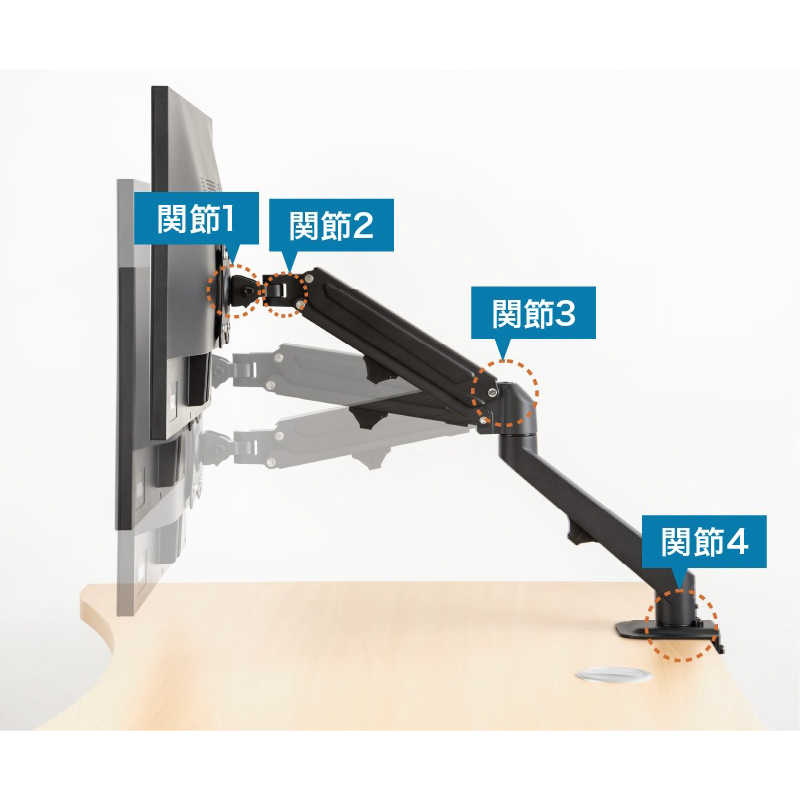 ●軽い力で画面を自在に動かせるガススプリング式アーム。