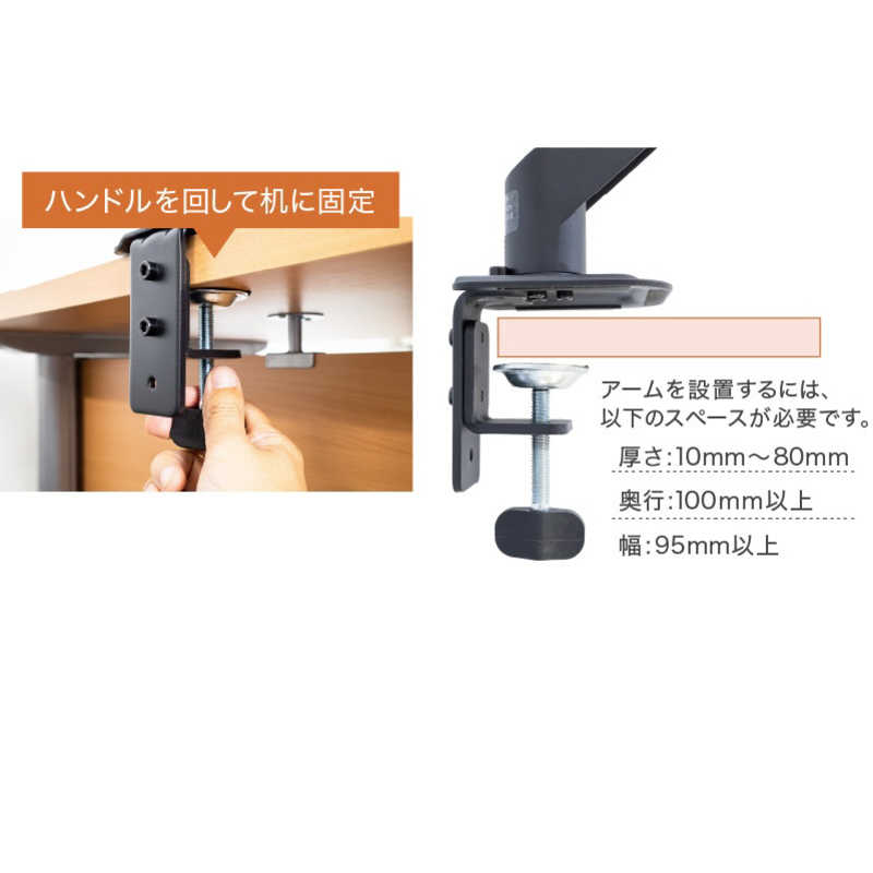 ●取付可能天板: 厚さ10mm~80mm、D100mm以上、W95mm以上