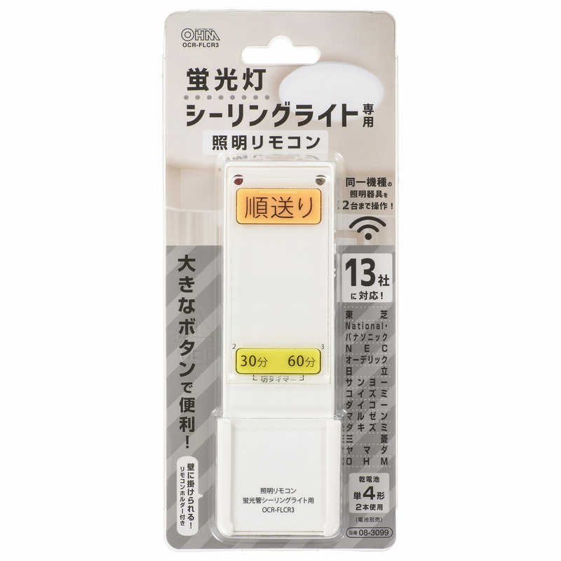 オーム電機 蛍光灯シーリングライト専用照明リモコン 国内13メーカー対応 OCR-FLCR3