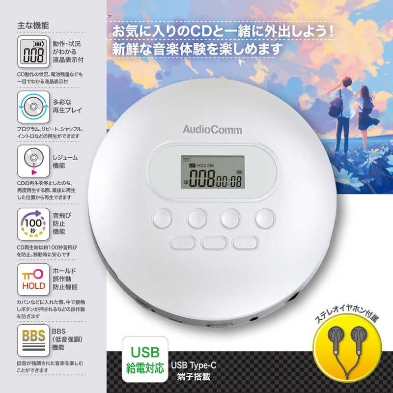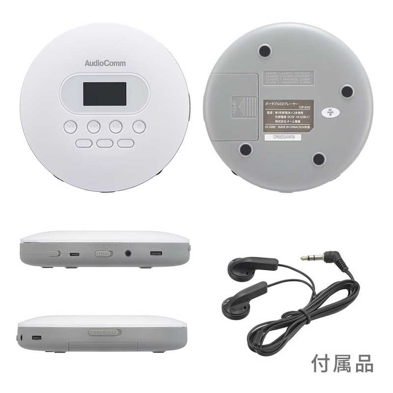 オーム電機 AudioComm ポータブルCDプレーヤー ホワイト CDP-828Z