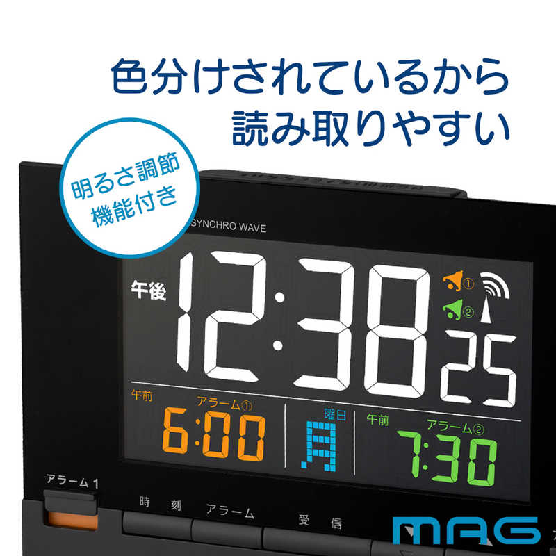 ![MAG ダブルアラーム機能で見やすさを追求したカラーLCD 電波時計 AC電源 カラーデジット [デジタル / 電波自動受信機能有] ブラック T-793 BK](/html/upload/save_image/0316185620_69b7d3c403eba.jpg)