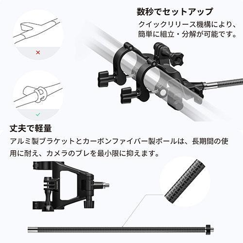 ●アルミ製ブラケットとカーボンファイバー製ポールは、長時間の使用に耐え、カメラのブレを最小限に抑えます。