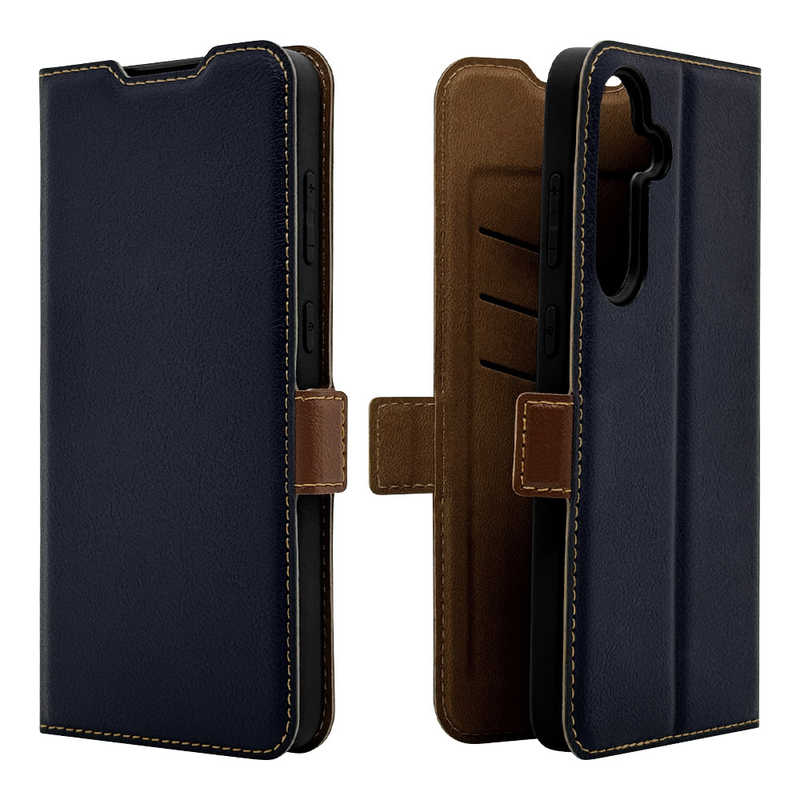 ラスタバナナ Galaxy S24 FE(SCG30)用薄型手帳サイドマグネットケース ネイビー×ブラウン 8569GS24FBSMNVB