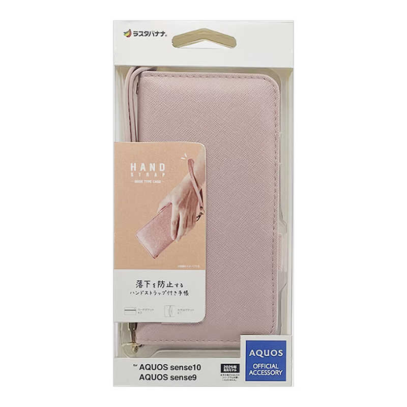 ラスタバナナ AQUOS SENSE10/9用 ハンドストラップ付き手帳型ケース ライトピンク 9248AS10BHSLPK