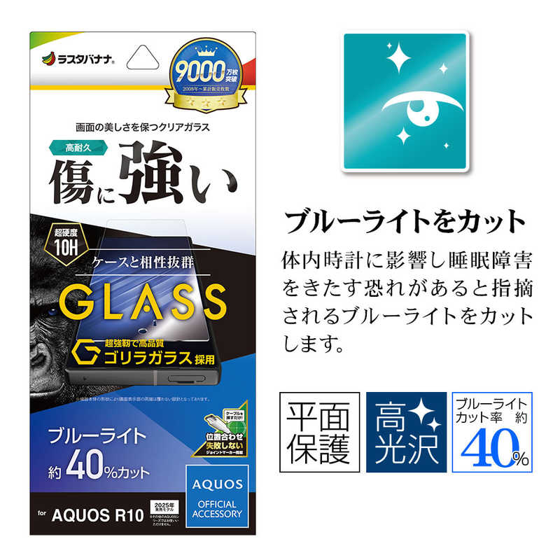 ラスタバナナ AQUOS R10 SH-51F用ガラスフィルム 平面保護 ブルーライトカット 高光沢 クリア GGE4834AR10