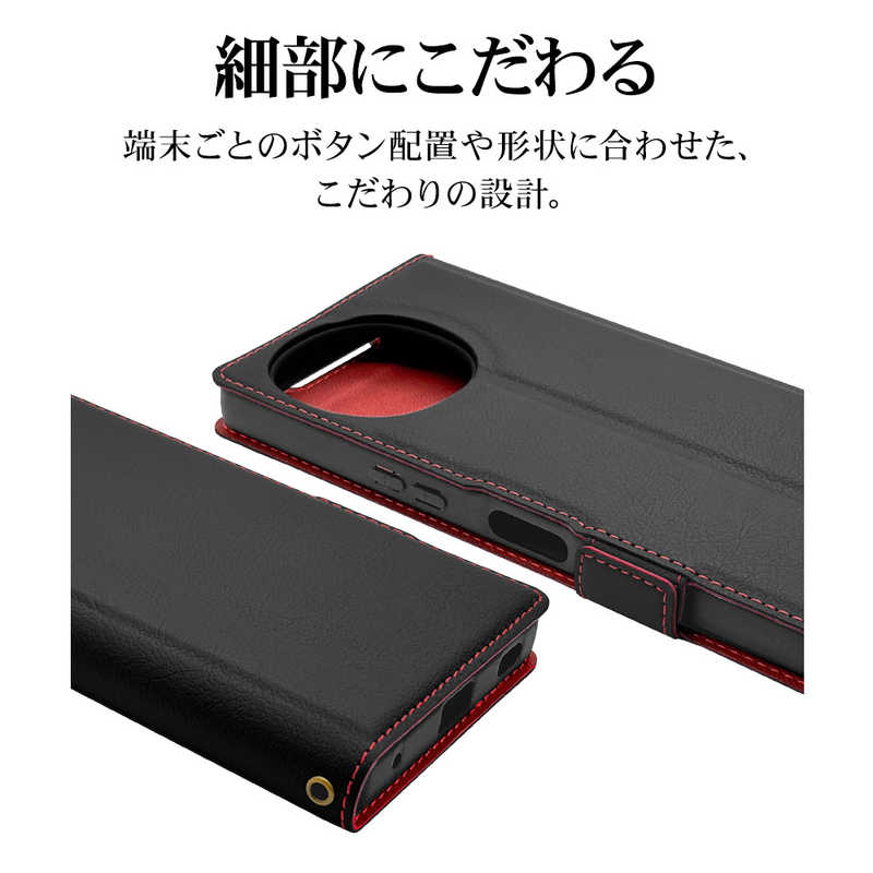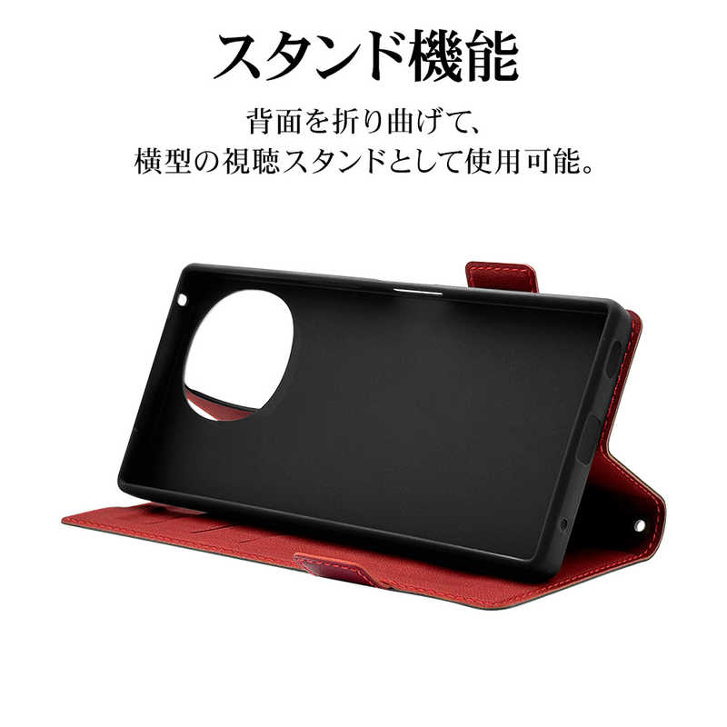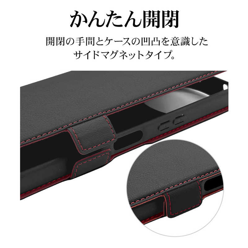 ラスタバナナ AQUOS R10用薄型手帳サイドマグネットケース ブラック*レッド 8801AR10BSMBKR