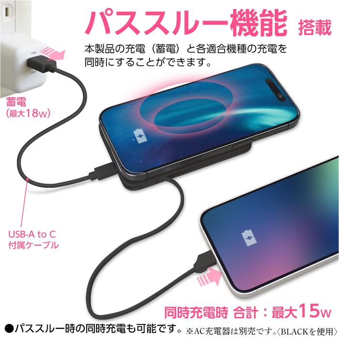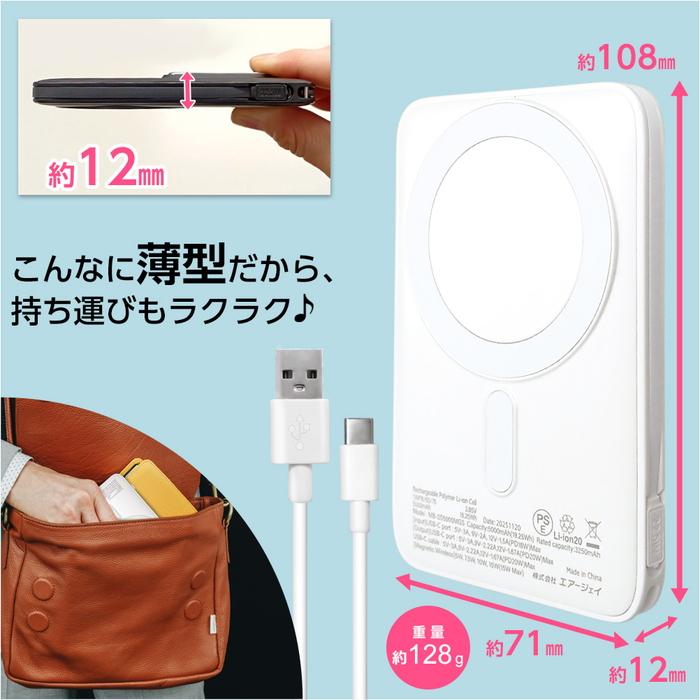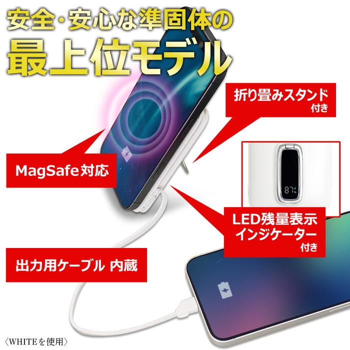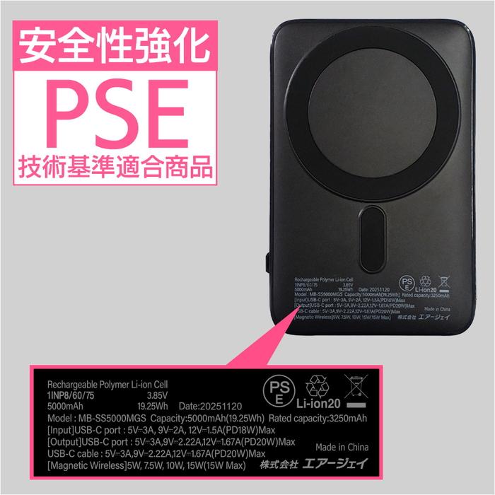 エアージェイ 準固体モバイルバッテリー5000mAh マグセーフ、スタンド、インジケーター付BK MBSS5000MGSBK