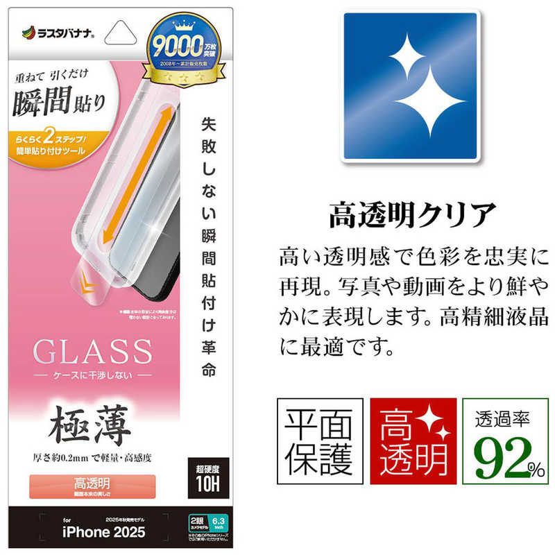 ラスタバナナ iPhone 17用 貼付革命 ガラスフィルム 薄型光沢 クリア MTK4878IP5A
