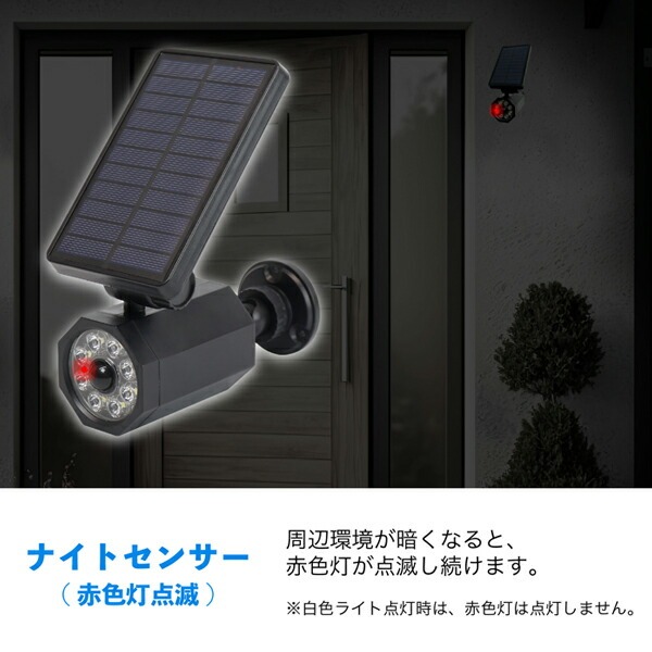 ●防滴IPX4&ソーラー充電式で面倒な配線も不要。防犯対策の第1歩に!