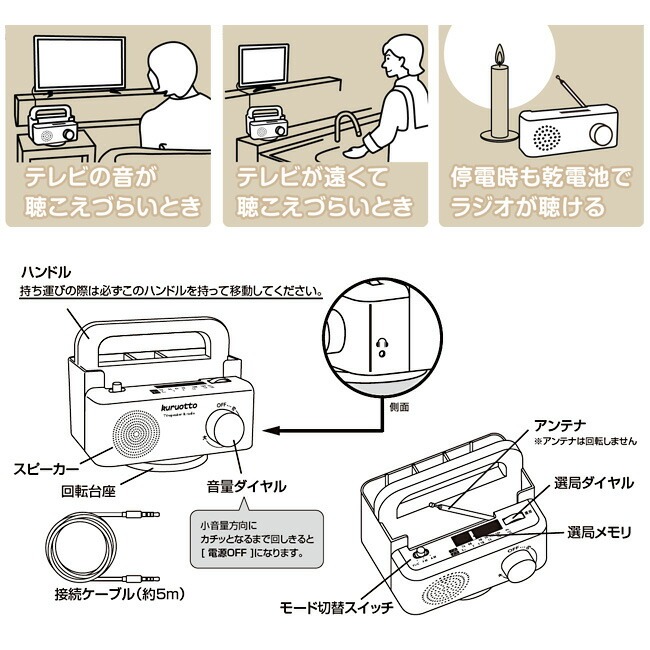 本体(ラジオ部+ラック部)・接続ケーブル(約5m)・取扱説明書(保証書付き)