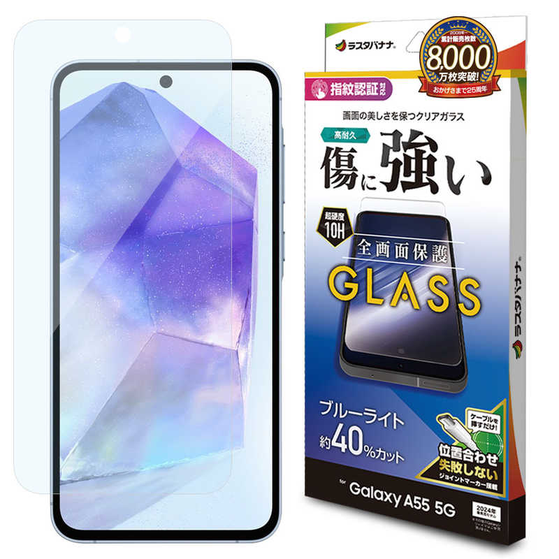 ラスタバナナ Galaxy A55 5G ガラスフィルム ブルーライトカット 高光沢 0.33mm 指紋認証対応 位置合わせJM付き クリア GE4176GA55