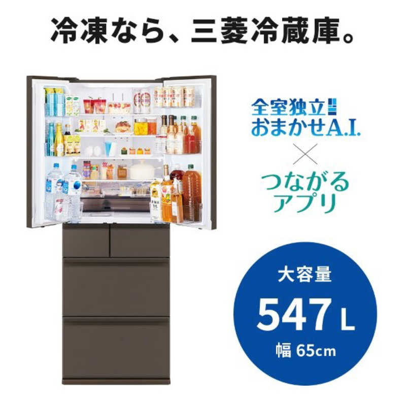 三菱 MITSUBISHI 547L 6ドアノンフロン冷蔵庫 WZシリーズ 中だけひろびろ大容量 WZシリーズ グランドアンバーグレー MR-WZ55N-H(大型)
