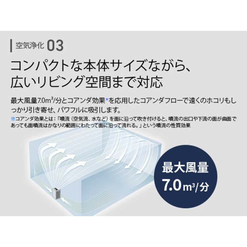 ■風量:[強]7.0、[中]5.1、[静音]1.5 m3/分